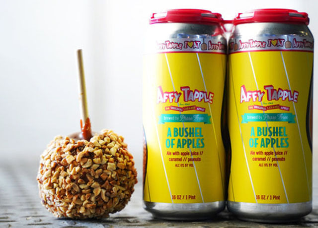 The beer harnesses the flavor of an Affy Tapple Original Peanut Caramel Apple, offering an inventive way for craft beer and Affy Tapple fans alike to enjoy the taste of this classic fall treat. Phase Three took a traditional blonde ale and added apple juice, peanuts, and Affy Tapple caramel to create the unmistakable aroma and flavor of an Affy Tapple Caramel Apple.
